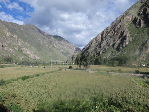 ![]() クスコの見学を終わって車でペルー鉄道の オリャンタイタンボ駅に向かう。 クスコは標高3400m 谷底へ下りてきた。 流れている川はウルバンバ川(アマゾン川の支流) |