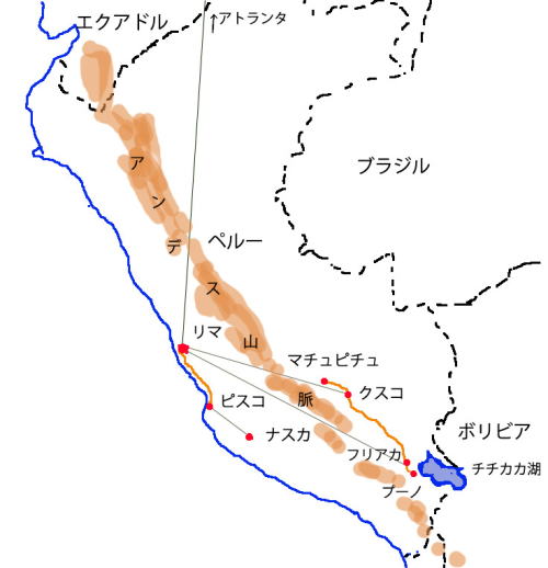 ペルーは国土が日本の3.4倍赤道直下から南緯18°にわたる広い範囲に広がっている。