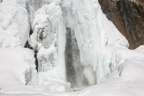 ![]() 氷の中に滝の水が流れています |