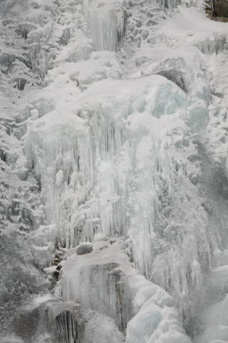![]() 真っ白に凍った滝が現れました。 |