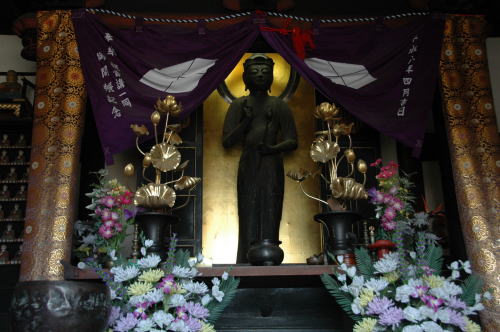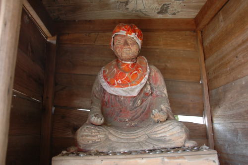 ![]() おびんずる様 (悪いところを触って祈れば次第に良くなるという信仰がある) 観音堂の入り口脇にある |