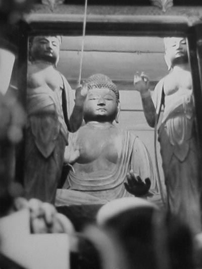 薬師三尊像(古い厨子に安置されていた頃) 国の重要文化財 |
