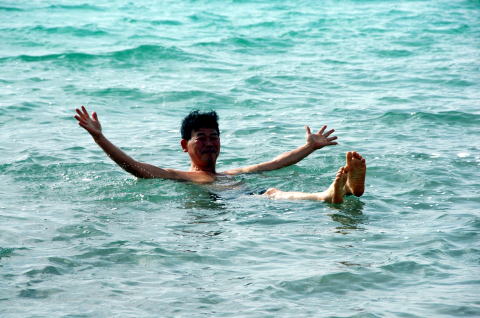 ![]() 死海の水面は海抜−418m 道路をだいぶ上ってきたところに 海抜0mの表示がありました |