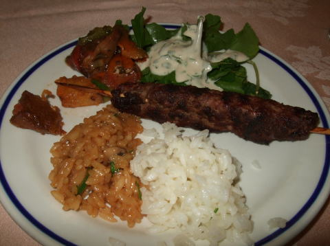 ![]() ご飯が出ました(インディカ米)、上側はシシカバブ(海老原さん撮影) |