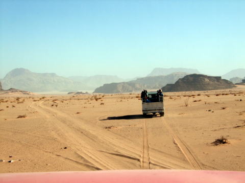 | 5日目 1月30日(金) ペトラを朝早く出発、今日は南下してワディ・ラムへ、そして北上しクセイル・アムラ(アムラ城)を見学してアンマンのホテルに向かいます。 ホテル着は7:00 |