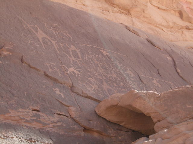 ![]() 岩山の壁に残るナバタイ人の絵(海老原さん撮影) |