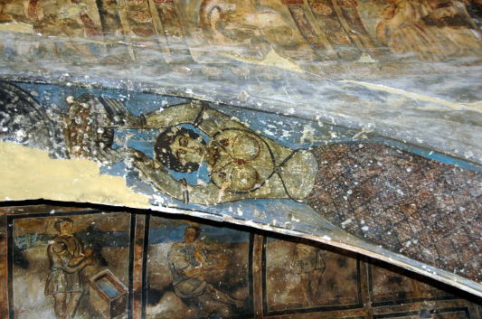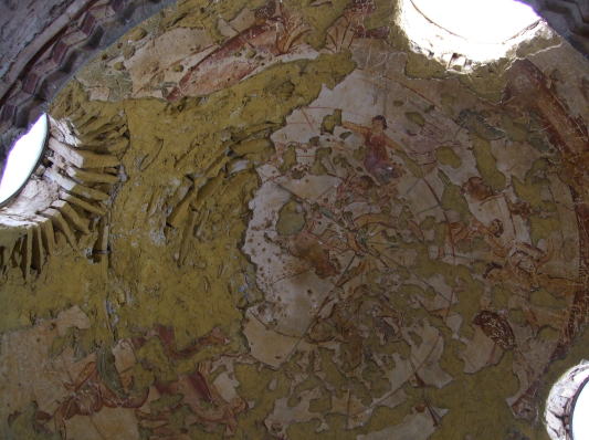 ![]() 天井に残るフレスコ画、女性の裸の絵がいくつか描かれている |