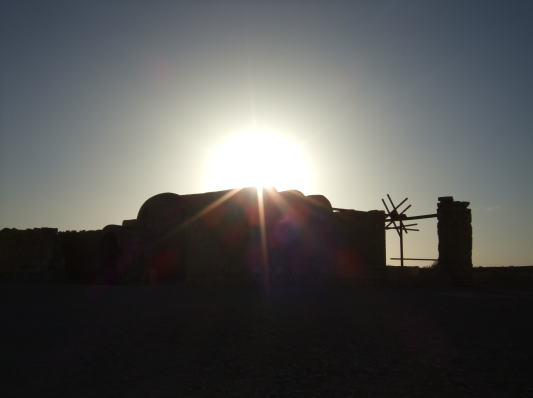 クセイル・アムラに沈む夕日(海老原さん撮影) |