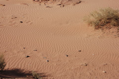 ![]() ワディ・ラムの砂漠は赤い砂が特徴 ラクダが似合います |