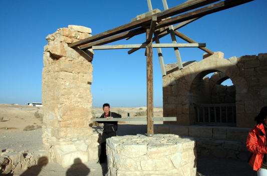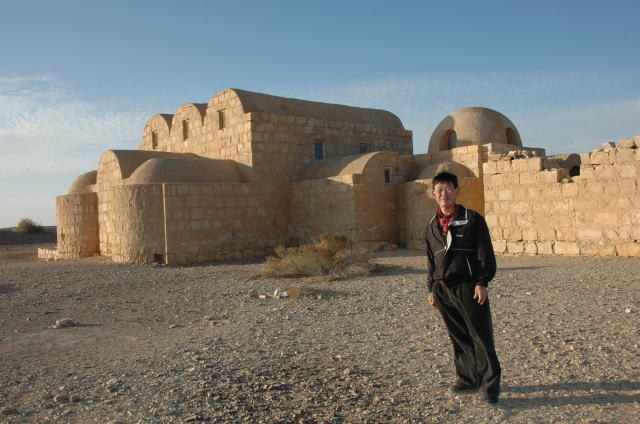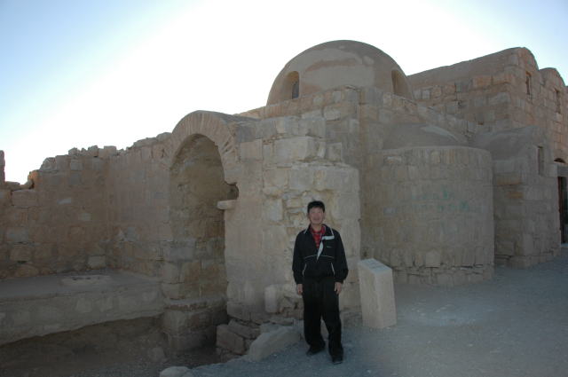 | クセイル・アムラ(アムラ城) アンマンの東側約80km砂漠の真ん中に小さな城が現れました クセイル・アムラです。 クセイルとは小さい城という意味だそうです。 8世紀頃のウマイヤ朝の王が離宮として建設したといわれている。 表向きは征服した地の警戒のために建てられたと言われているが、実際には、 厳格なイスラム教徒の目をそらし、王族達が快楽を享受するための離宮だった と考えられている。 右側の長方形の部分に井戸があります。 左の建物の内部にフレスコ画が残っている。 建物やフレスコ画の保存状態が良いので世界遺産に指定されている。 |