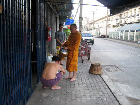 ![]() ホテルはバンコク駅のそば、朝起き朝食前に散歩 仏教の僧が托鉢に歩いている。市民はその僧に食べ物を 布施する。いや布施をさせていただいている。そんな感じを 受けさせられた。 |