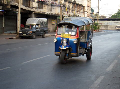 ![]() 街を走るトクトク 日本にも昔あったような3輪の自動車 現在タクシーとしてたくさんは走っていた |