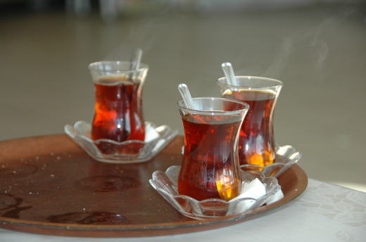トルコの飲み物はチャイ 紅茶です一日に平均して5杯〜6杯は飲むそうです。 美味しかったです。 この形のグラスに入れてくれます。なかなか良い形のコップです |