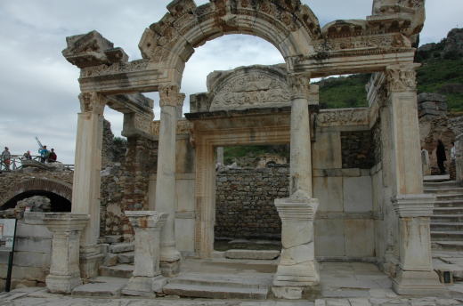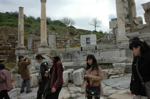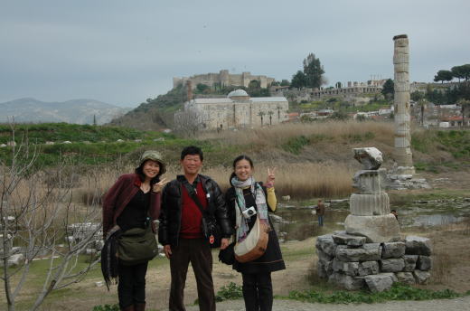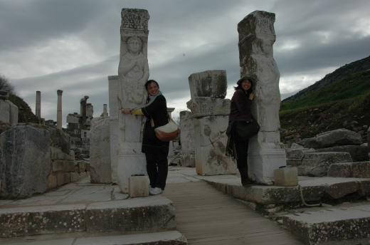 ![]() 教会の前に広がるのがアルテミスの神殿 両手に花でご満悦の私 |