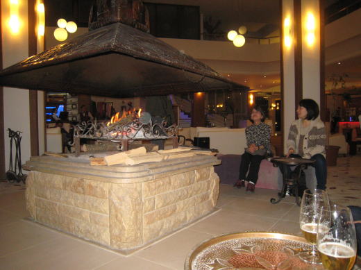 ![]() ホテルのロビーには暖炉があかあかと燃えくつろげます。 |