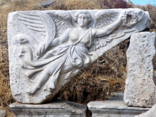 ![]() 勝利の女神ニケのレリーフ 前述のヘラクレスの門のアーチ部分にあった。 ルーブル美術館のサモトラケのニケには頭部がない。 スポーツ用品のナイキの名前の由来 ロゴマークは翼の部分からとったそうです。 |