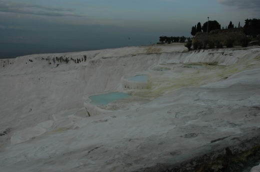 ![]() パムッカレはその昔石灰岩の山に温泉が湧き出ていたため 紀元前190年頃からの遺跡だ 現在は石灰棚とともに複合世界遺産に登録されている |