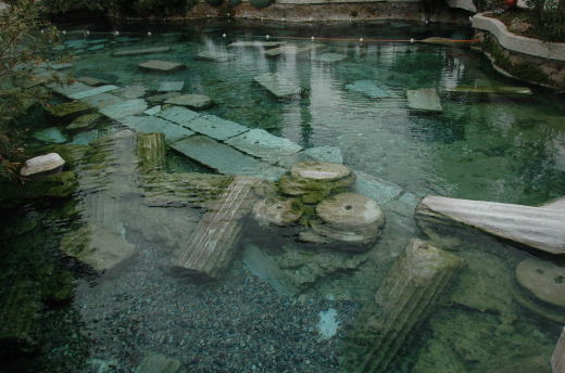 ![]() 以前ここにはホテルがあってその温泉プールだったそうです プールの底にはヒエラポリス遺跡の柱や礎石が |