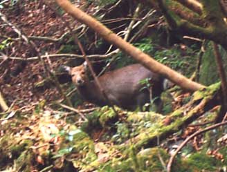 ウィルソン株を過ぎて樹林帯の中でヤクシカを見かけました。 人が近くに行ってもあまり恐れることもありませんでした。 |